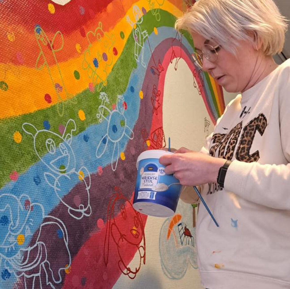 Aan de hand van de tekeningen en ideeën van de kinderen maak ik een ontwerp op maat. Tijdens de uitvoering kunnen de kinderen natuurlijk ook een handje meehelpen- zo wordt het echt hún kunstwerk!
