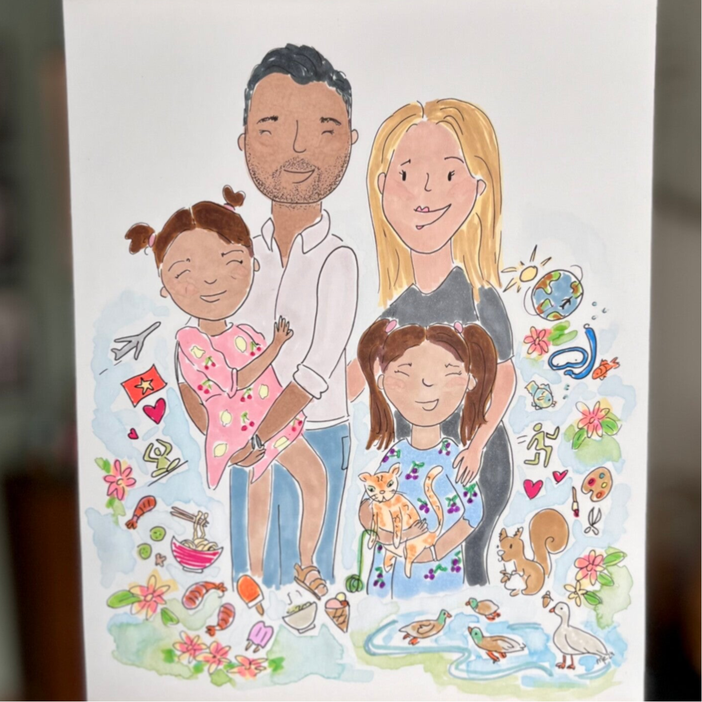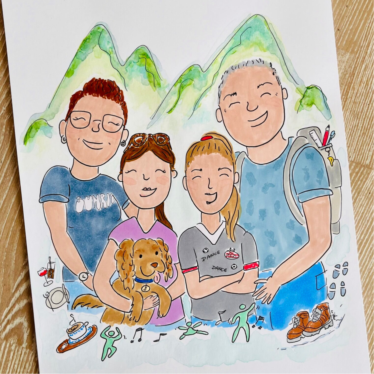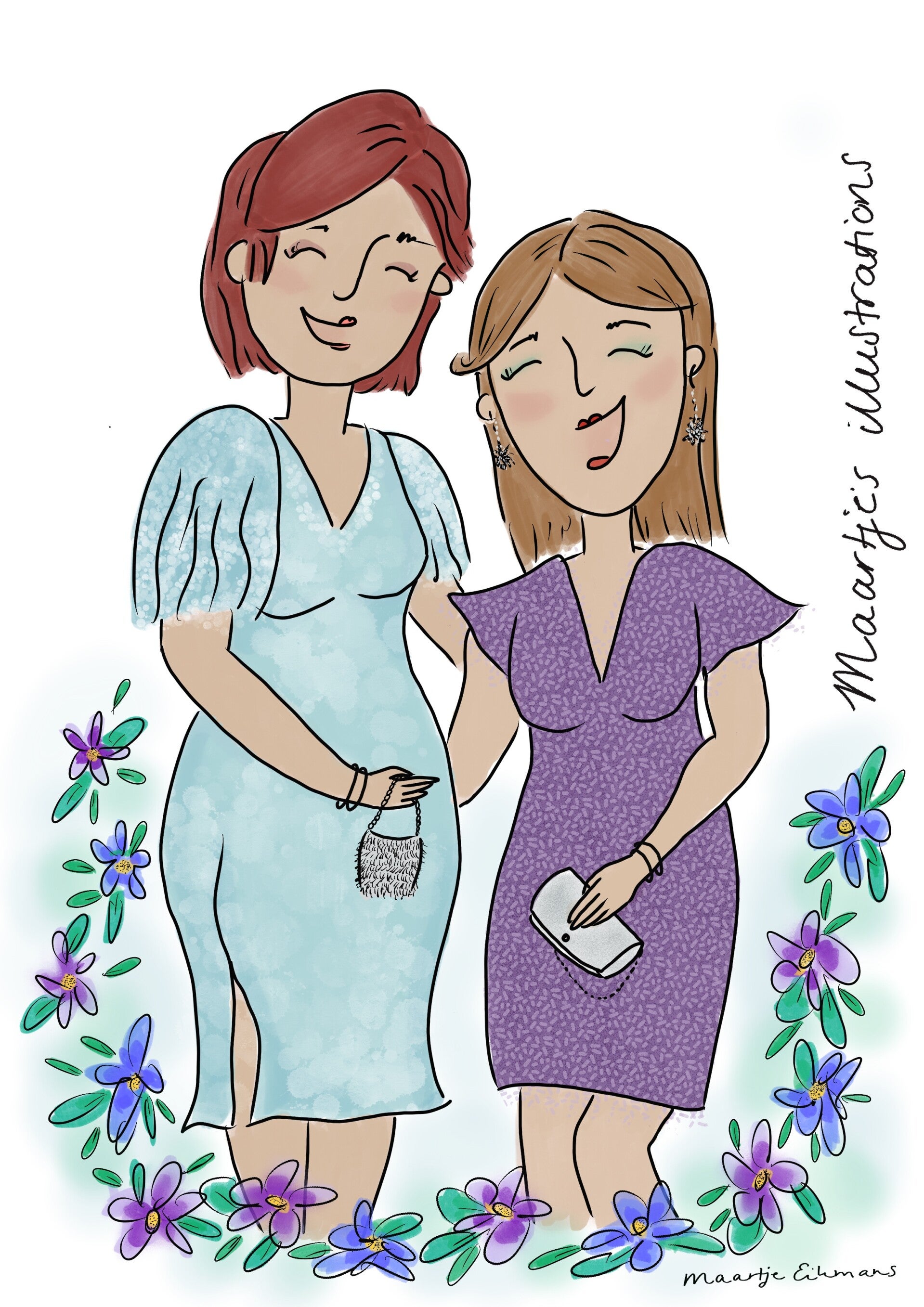 Voor portretten werk ik op basis van foto’s die vooraf worden aangeleverd. Wil je meerdere personen samen op één illustratie laten afbeelden? Dan hoeven zij niet per se samen op de foto te staan – losse foto's zijn ook prima.